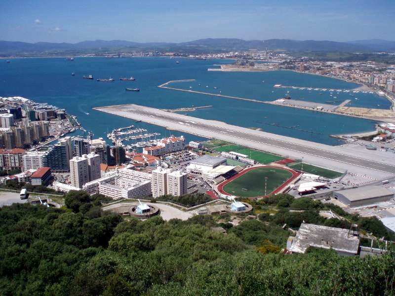It is linked to the continent by a sandbar rising a few metres over the sea surface. Broken many times in the pas, the Peninsula turned into an island. On the sandbar, there is an airport being the property of the local airlines, Gibraltar Airways, as well as an army barracks. The airport is especially worthy of note as it possesses an artificial runway 2 kilometres long, penetrating 1 kilometre deep into the Bay of Gibraltar.